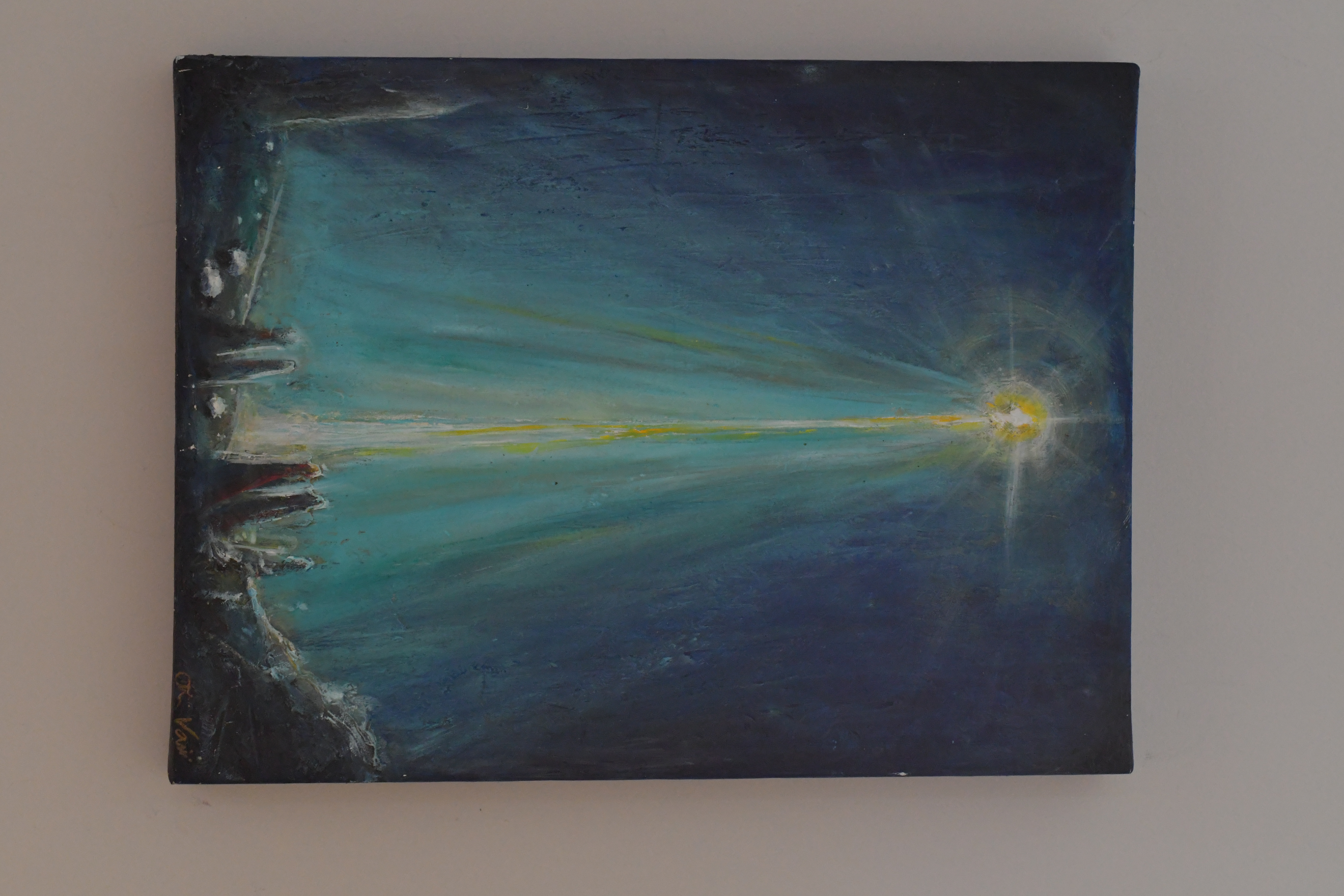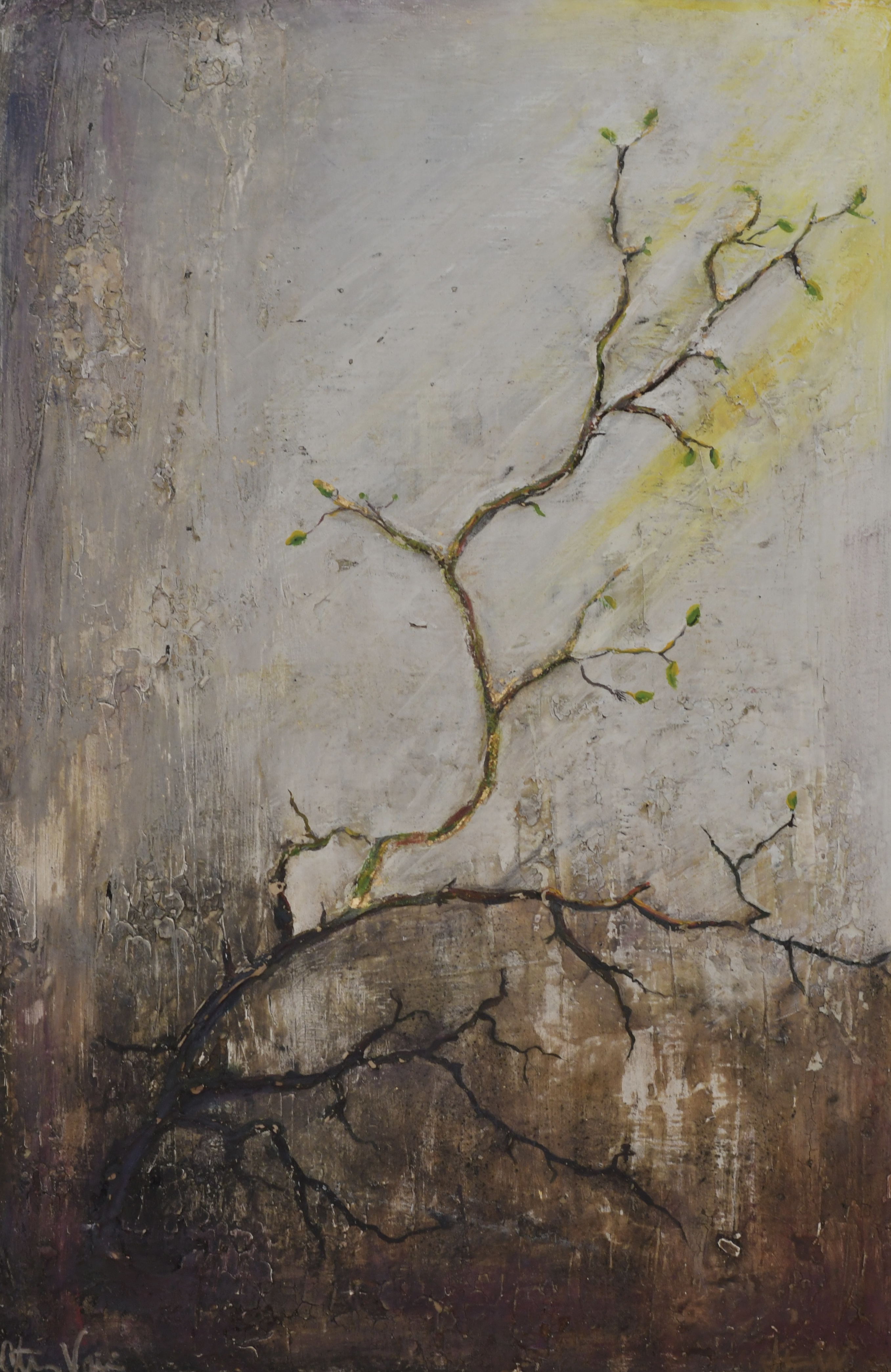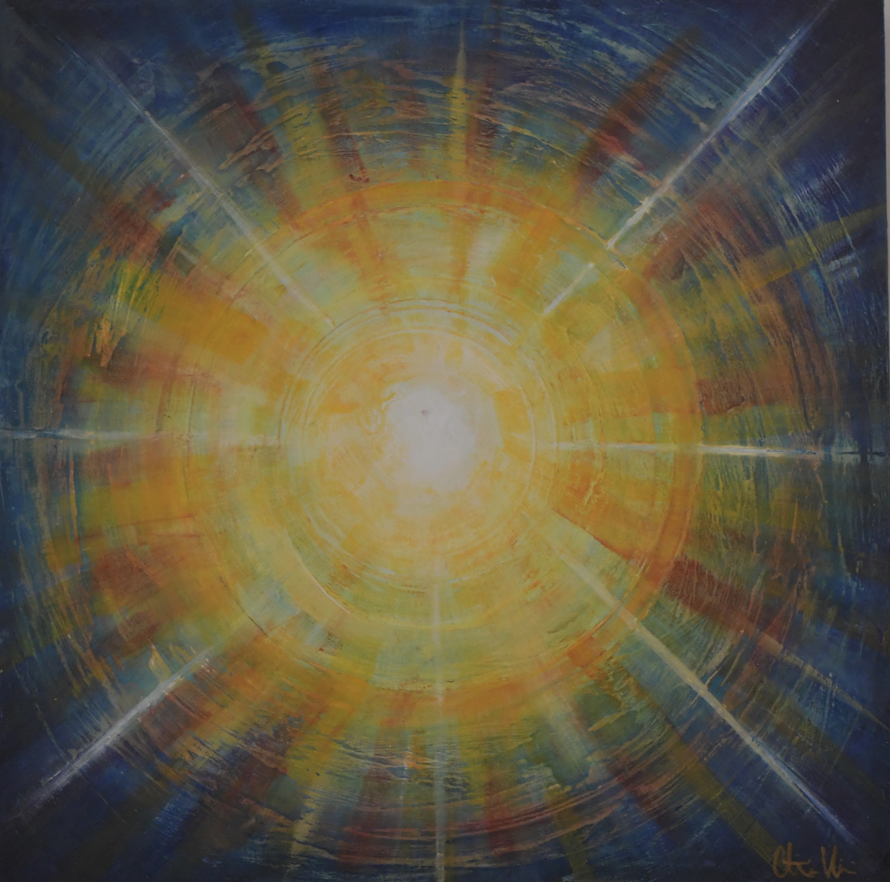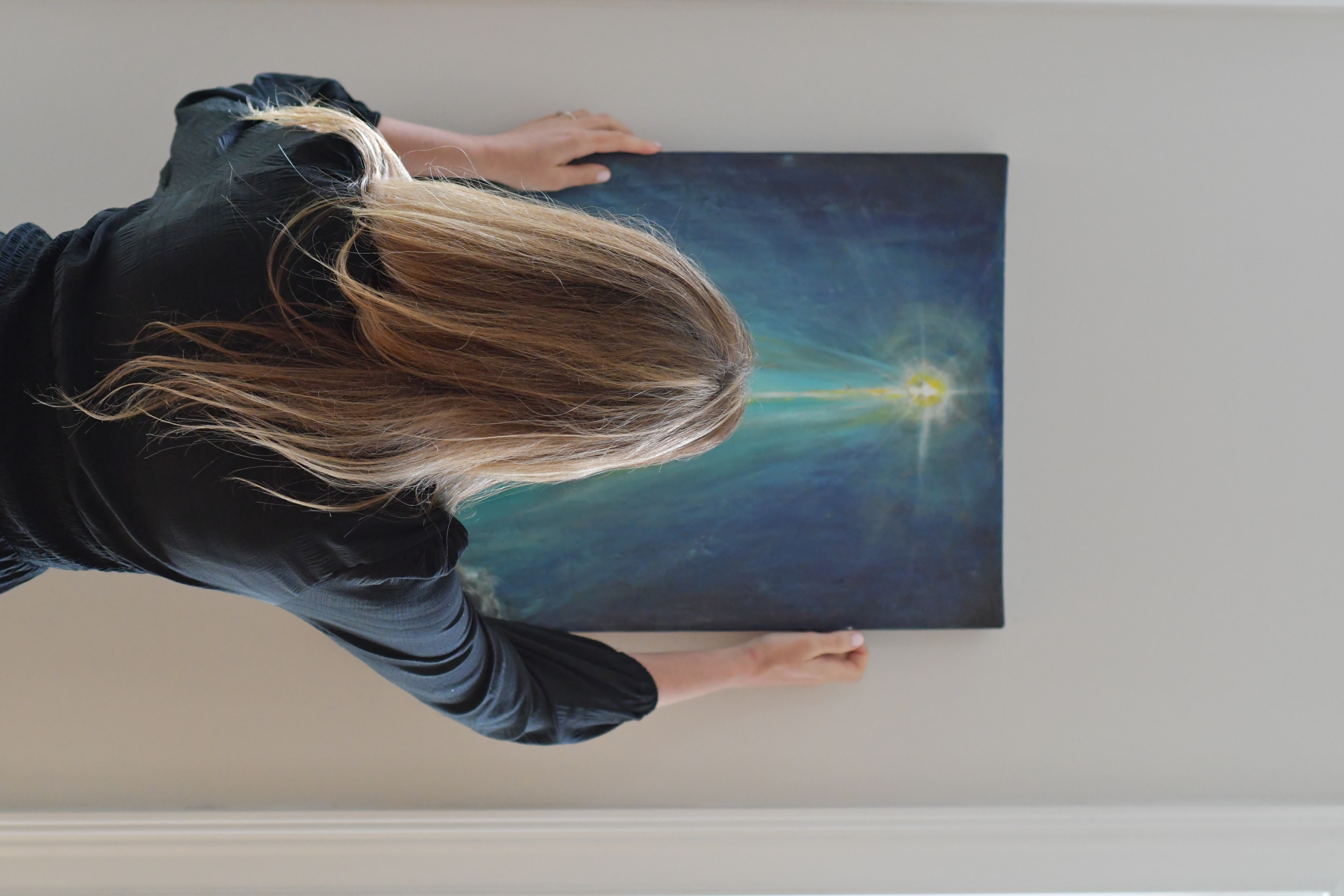 "My work explores light as a symbol of divine presence, embodying hope, peace, and love. I believe there is profound beauty and purpose in the contrast between light and darkness, elements we all encounter in life. Yet, when we focus on the light, the darkness loses its power. Drawing inspiration from nature and expressed through semi-abstract forms, my paintings invite viewers to reflect on the peace and power that flow into our lives when we fix our eyes on Him who is the true source of peace and light." – Christina Varini